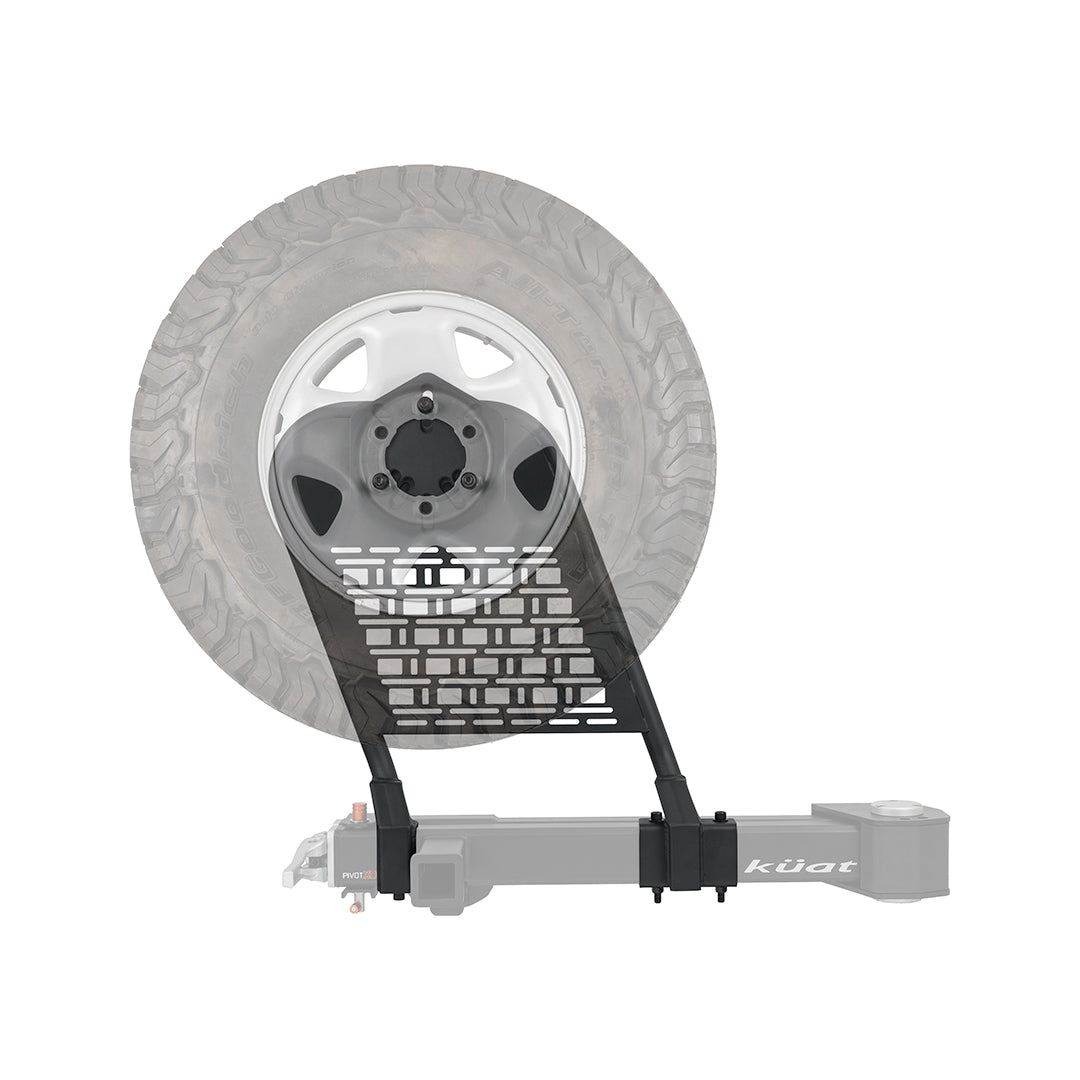 Carry a full-size spare tire into the backcountry with confidence. The Pivot XD Tire Carrier mounts directly to the Pivot XD Accessory Hoop with MOLLE Panel and fits tires up to 37 inches. Built from rigid steel with a premium matte black powder coat and offered in three wheel fitments.